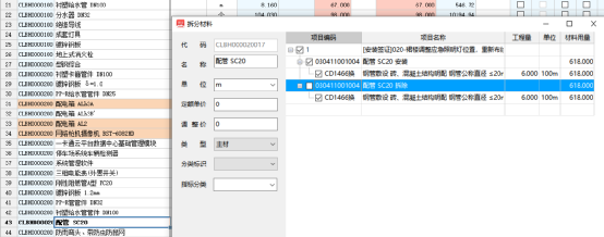 材料拆分:选中需要拆分的材料,单击右键,选择拆分材料,比如将配管拆分成不同规格。