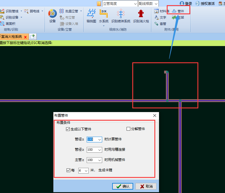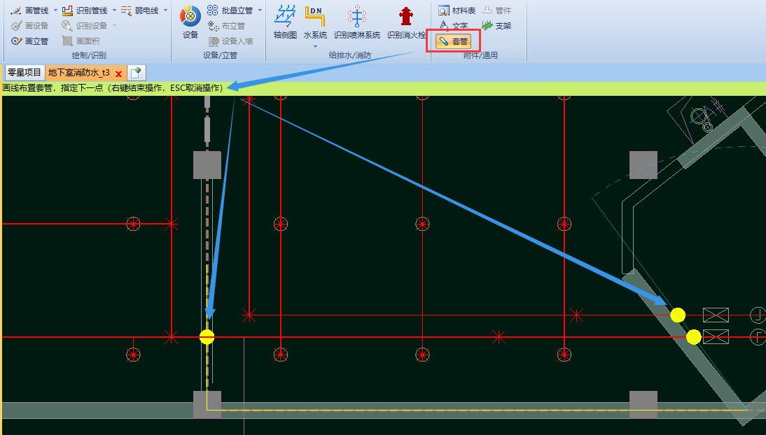 ③生成套管(生成的套管和相交的管规格一致需要手动修改其规格;)