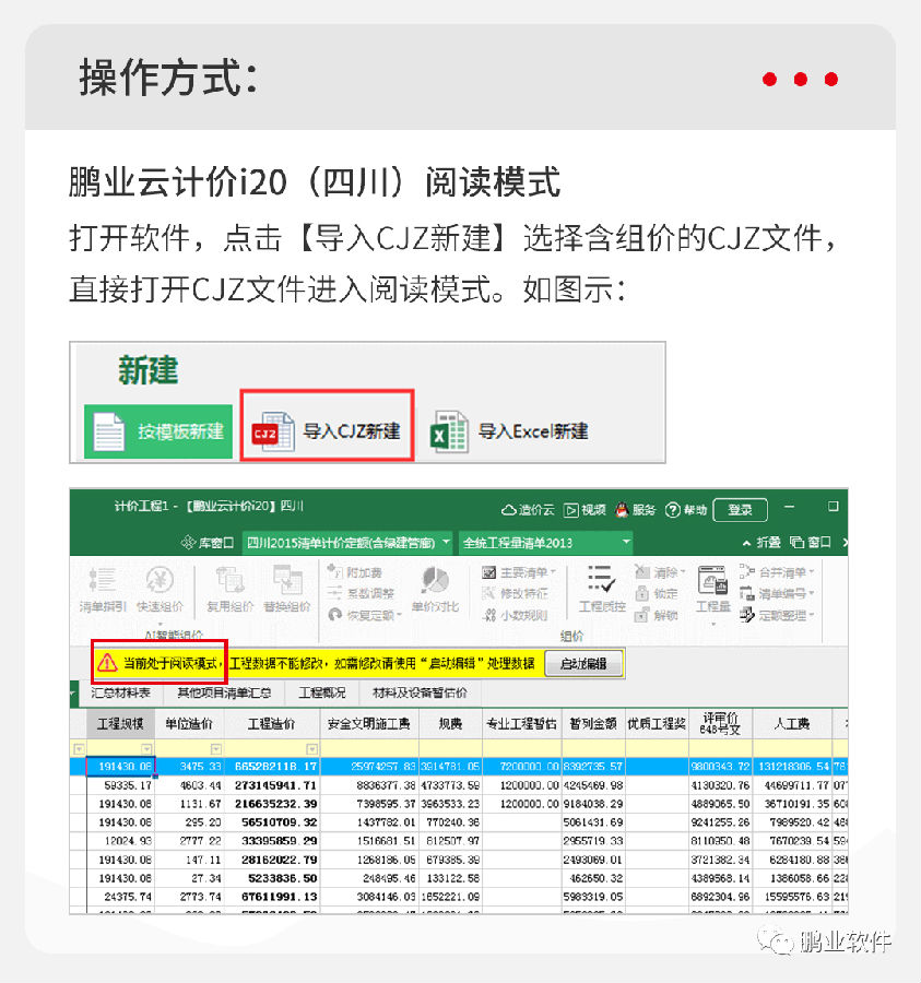 鹏业云计价i20(四川)“阅读模式”功能目前已正式发布,版本号V11.1.0Build 699,升级软件即可使用。