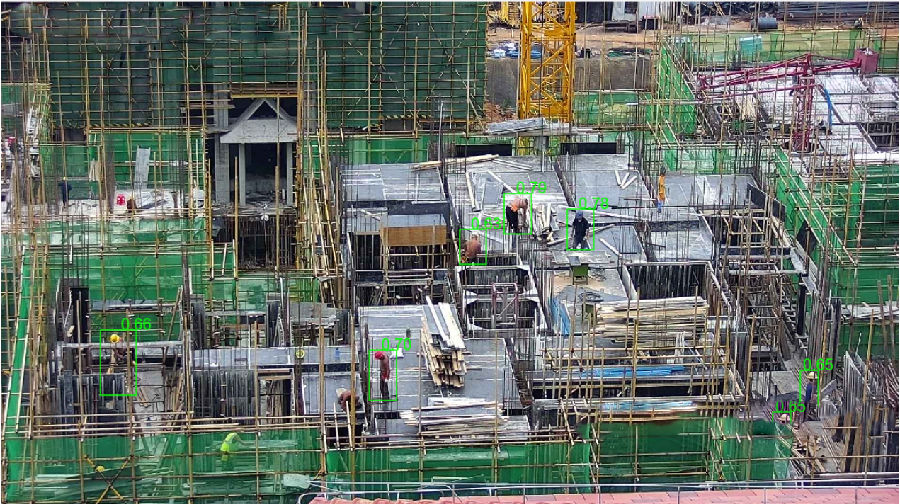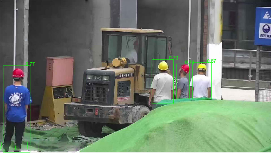 用于施工作业面,可对该区域的人员是否佩戴安全帽进行自动识别