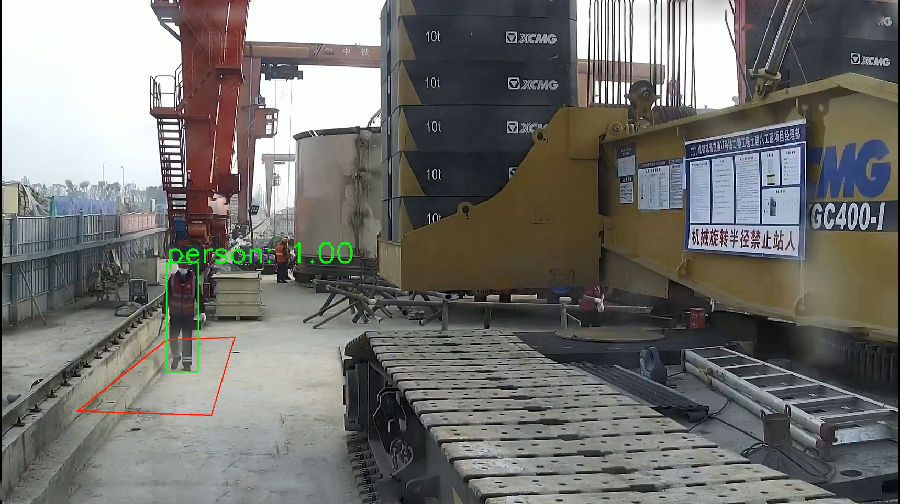 基于目标检测技术以及关键点识别技术,结合现场摄像头,实时检测危险区域是否有人员越界。