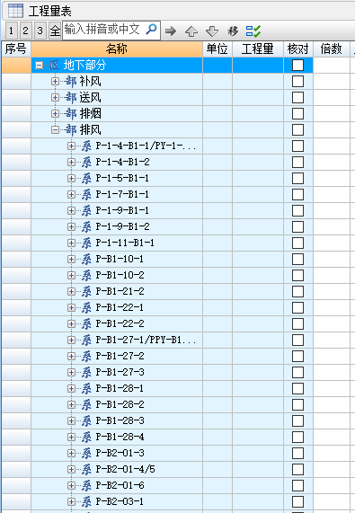 ●工程中有补风、送风、排烟、排风等系统,各类系统下的子系统也较多,通过数据管理将各类型系统集中管理起来,汇总时总量与分量的切换秒实现。数据反查简单、快速,每条数据项都定位到图元,数据所属层级关系一目了然。
