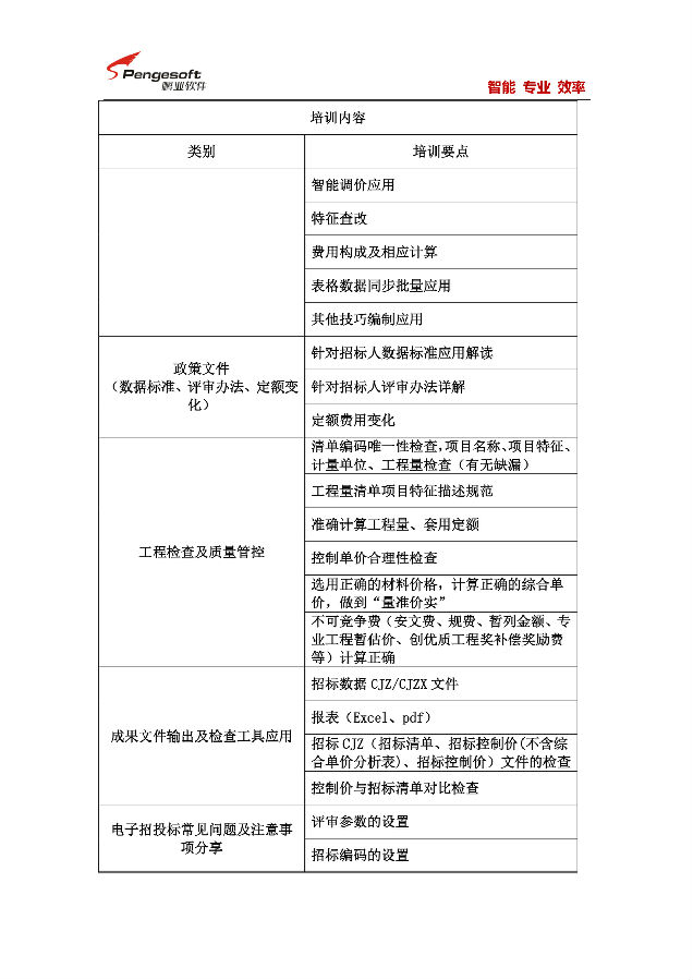 鹏业软件产品培训方案