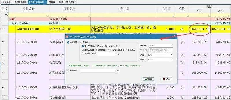 在鹏业云计价i20软件中“全费用综合单价”的描述方式示例如下图: