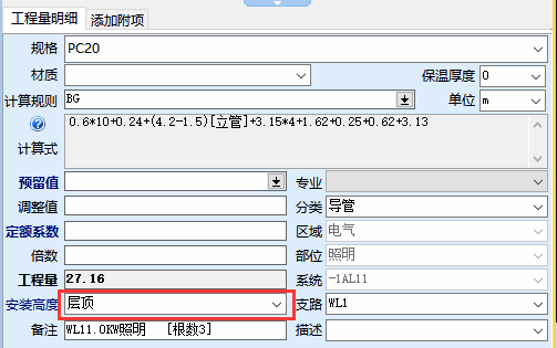 2.计算项明细增加安装高度