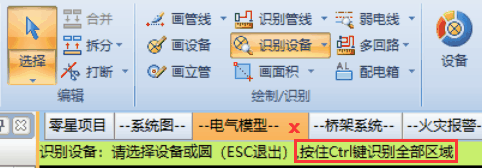 设备识别默认按分区范围识别,按住ctrl键可对全图范围识别