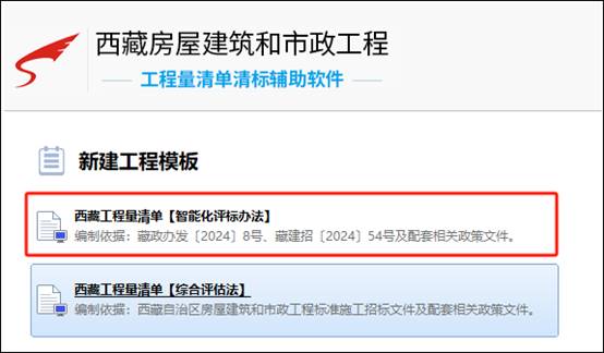 1. 打开软件,在新建工程的模板里面选择西藏工程量清单【智能化评标办法】模板,如图示:
