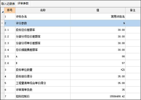 在评审参数界面请完善评审参数里面的信息。如图示:
